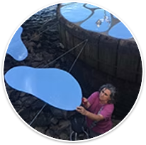 Kate finds it deeply gratifying to create public art because it always requires working with people who are committed to community building. While Kate’s permanent installations use metal, glass, concrete, and porcelain enamel, her temporary installations investigate the possibilities of building with single use waste, such as bottles, cans, and even books. Her works celebrate the transformation of materials and the hidden patterns of human habits.